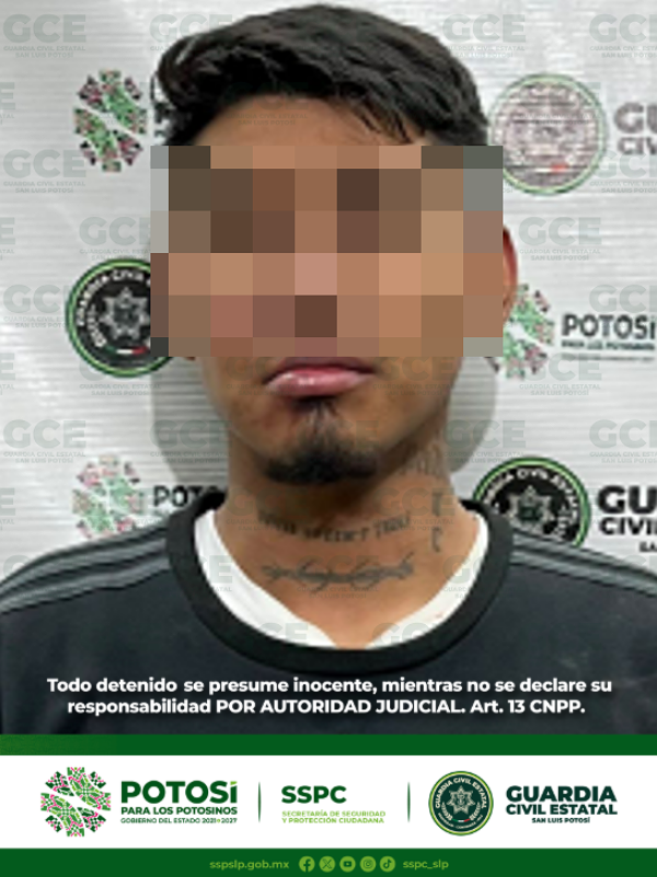 San Luis Potosí, S.L.P.- Durante los operativos de seguridad, efectuados por elementos de Guardia Civil Estatal (GCE), un hombre fue detenido por probables delitos contra servidores públicos en funciones y resistencia al arresto.