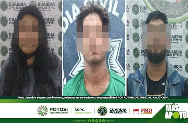 S.L.P.- En respuesta a diferentes auxilios solicitados a la Guardia Civil Estatal (GCE), tres personas resultaron detenidas, tras ser señaladas de presuntas agresiones a miembros de su familia, por ello se les brindó el apoyo a las víctimas y la asesoría legal correspondiente.