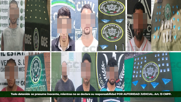 S.L.P.- Como resultado de los trabajos preventivos efectuados por la Guardia Civil Estatal (GCE), ocho personas resultaron detenidas, por probables delitos contra la salud.