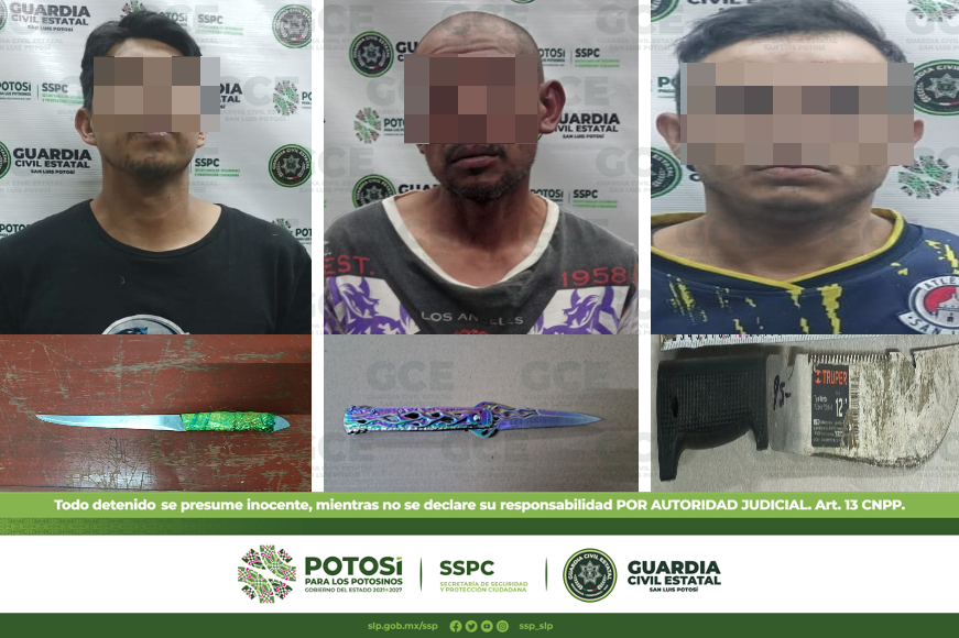 Los detenidos fueron puestos a disposición de la Fiscalía General del Estado, junto con las armas blancas aseguradas.