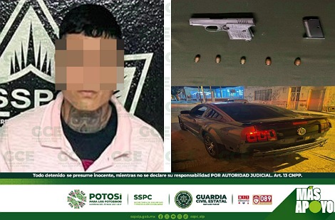 Matehuala, S.L.P.- Derivado de los trabajos efectuados en el operativo “Altiplano Seguro”, agentes de la Guardia Civil Estatal (GCE) detuvieron a un hombre, en la zona centro de Matehuala, por el probable delito de portación de un arma de fuego.