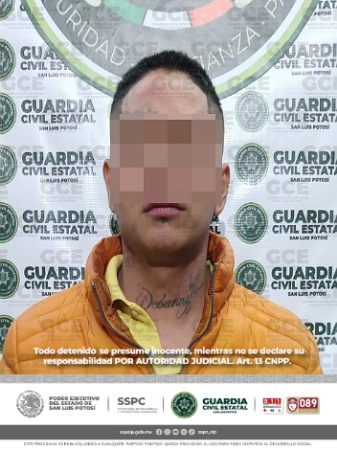 San Luis Potosí, S.L.P.- Un presunto fue detenido por elementos de la Guardia Civil Estatal (GCE) luego de que ocasionara daños a una unidad Radio Patrulla, además de oponer resistencia al arresto y agredir físicamente a los elementos aprehensores.
