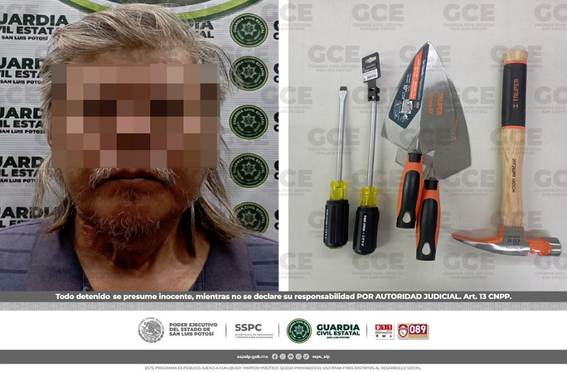 San Luis Potosí, S.L.P.- Una alerta emitida por los Operadores del Sistema de Emergencias 911 sobre un robo en proceso, ocurrido en una tienda departamental ubicada en el fraccionamiento San Patricio, permitió la detención de un hombre por agentes de Guardia Civil Estatal (GCE), por ser presunto responsable del robo de herramienta diversa.