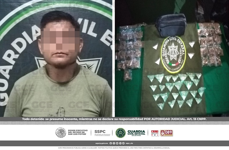 Ciudad Valles, S.L.P.- Derivado de los operativos para el combate sin tregua a la delincuencia y al narcomenudeo, oficiales de la Guardia Civil Estatal (GCE) detuvieron a un presunto vendedor de droga en la región Huasteca.