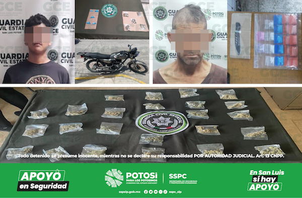 Por último, en el municipio de Charcas, elementos estatales detuvieron a un joven de 15 años de edad, en la colonia Siglo XXI, el menor fue sorprendido con 24 dosis de marihuana, preparadas para su venta individual. Se encuentra vinculado a una célula criminal dedicada a la venta y distribución de narcóticos en este municipio.