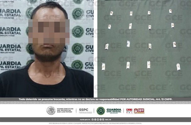 Villa de Reyes, S.L.P.- Mediante las acciones para el combate frontal a la delincuencia y al narcomenudeo, oficiales de la Guardia Civil Estatal (GCE) capturaron a un presunto vendedor de narcóticos en el municipio de Villa de Reyes.
