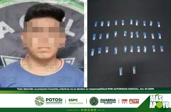 Aquismón, S.L.P.- En el marco de los operativos para inhibir la venta de narcóticos en la entidad potosina, un hombre, presuntamente vinculado a un grupo criminal, en la venta de narcóticos, fue detenido por agentes de la Guardia Civil Estatal (GCE), con varias dosis de la droga sintética conocida como “cristal”.