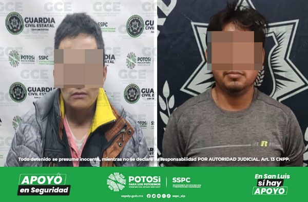 S.L.P.- Mediante la coordinación entre los Operadores de la Línea de Emergencias 911 y agentes de la Guardia Civil Estatal (GCE), dos presuntos resultaron detenidos por el probable delito de violencia familiar, en agravio de sus parejas sentimentales.