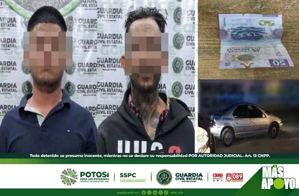 San Luis Potosí, S.L.P.- Operativos de seguridad, efectuados en la zona metropolitana, por agentes de la Guardia Civil Estatal (GCE), permitieron la detención de dos hombres, por probables delitos contra la seguridad vial y por cohecho.