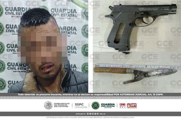 El afectado reconoció y señaló a Juan “N” de 37 años de edad, como la persona que previamente lo había amenazado, para después despojarle de sus pertenencias y ocasionar daños. Al momento de su arresto, al masculino se le aseguró una réplica de un arma de fuego calibre 4.5 milímetros y unas tijeras de jardinería.