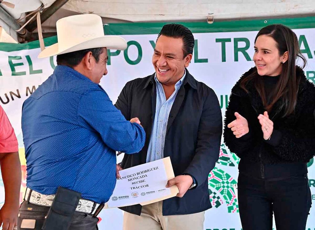 En San Luis Potosí ya despegó hacia un mejor bienestar y desarrollo de las y los productores agrícolas y ganaderos, con la entrega de 30 tractores, molinos, remolques y paquetes de herramientas en Villa de Ramos, con una inversión conjunta de 33 millones de pesos a favor de 532 beneficiarios, con lo que se lleva bienestar y se mejora la calidad de vida de las familias del Altiplano.