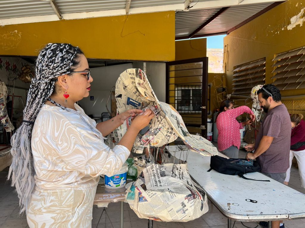 La Dirección de Cultura Municipal en coordinación con promotoras culturales de colonias y barrios se encuentran elaborando calaveras monumentales, dentro de las actividades del taller impartido por el talentoso artista potosino Felipe A. Arredondo en el Centro Cultural La Merced.