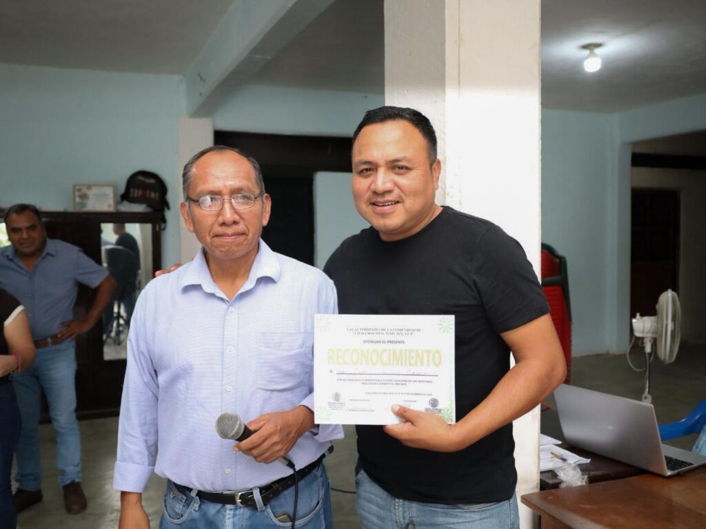 La comunidad también entregó reconocimientos al delegado de SEDESORE, Ing. Omar Martínez, y a la síndico municipal, Miriam Estela, por su acompañamiento constante y su apoyo en diversos proyectos.