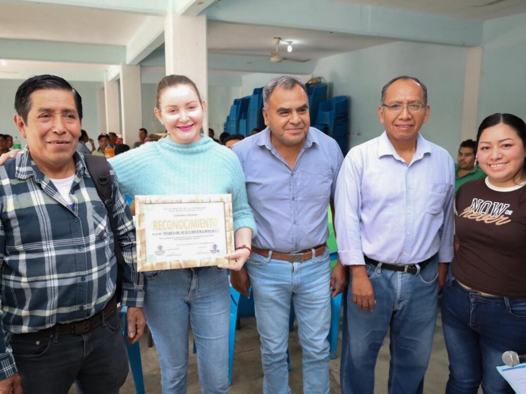 La comunidad también entregó reconocimientos al delegado de SEDESORE, Ing. Omar Martínez, y a la síndico municipal, Miriam Estela, por su acompañamiento constante y su apoyo en diversos proyectos.