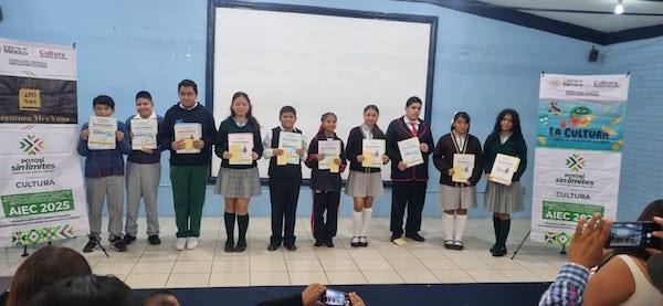 Por su parte, en el proyecto “4 Zonas – Literatura Mexicana”, las y los ganadores fueron Jaziel Hernández Chavarría, primer lugar; Emma Medina Banda, segundo lugar; y Guadalupe Sánchez Salazar, tercer lugar, con menciones honoríficas para Karla Isabel Caballero Martínez y Janeth Guadalupe Jiménez Maldonado.