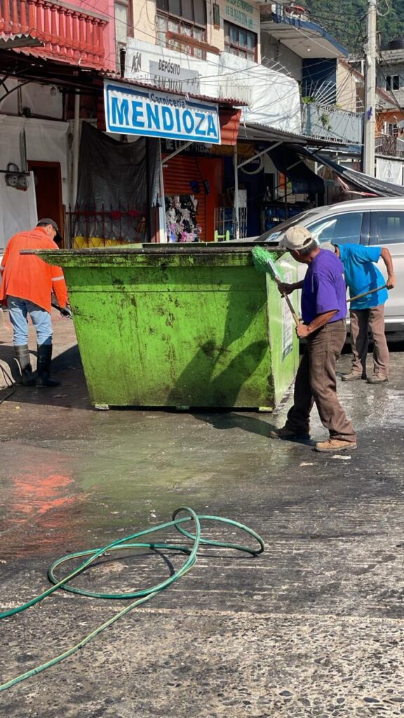 Por indicaciones del presidente municipal, Adelaido Cabañas Hernández, el área de Aseo Público continúa realizando de manera constante labores de limpieza y mantenimiento en los contenedores móviles distribuidos en diferentes puntos de Tamazunchale.