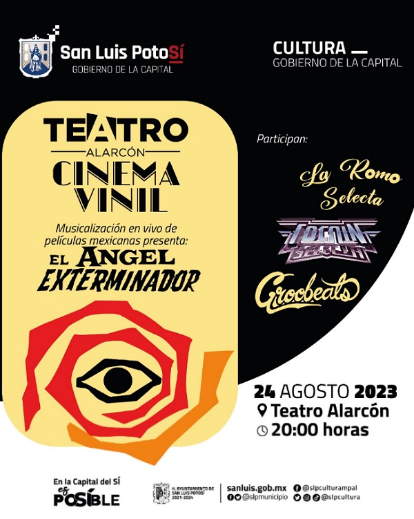 Se presentará la agrupación Colectivo Rasca Discos integrada por Groobeats, Cocain Selecta y La Romo Selecta, quienes presentan el programa “Cinema Vinil”, con la musicalización de la película “El Ángel Exterminador”, del aclamado director Luis Buñuel.