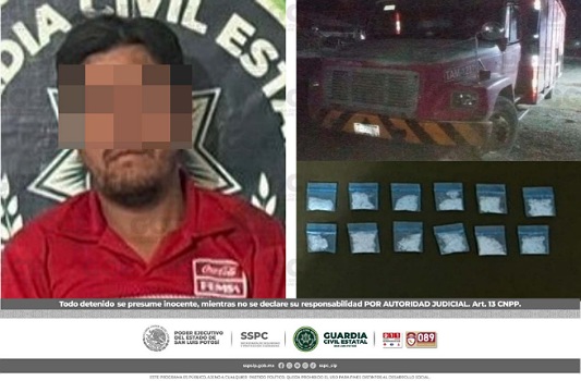 El presunto conducía un camión de la empresa Coca-Cola sobre la carretera México-Laredo, cuando se le marcó el alto a la altura del Barrio La Cruz, asegurándole 12 dosis de “cristal” preparadas para su venta y distribución individual.