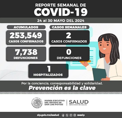 Del 24 al 30 de mayo del presente año, se registraron dos nuevos contagios de COVID-19 confirmando el Comité Estatal para la Seguridad en Salud y los Servicios de Salud 253 mil 549 casos totales de esta enfermedad.