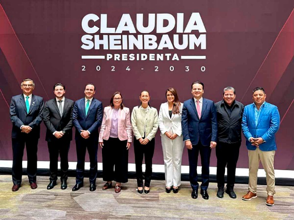 La Presidenta electa de México Claudia Sheinbaum Pardo, sostuvo una reunión de trabajo con las y los gobernadores del noroeste del país para tratar temas y proyectos en común, donde destacó la Inversión Extranjera Directa (IED) en la región, las ventajas de los estados como San Luis Potosí al adherirse al Imss-Bienestar e informó que se creará un grupo de trabajo con la Comisión Nacional del Agua (Conagua) para revisar y mejorar la gestión y suministro del líquido, además de la mejora de la coordinación en materia de seguridad, el fortalecimiento de la Guardia Nacional y la vigilancia en las carreteras, entre otros importantes temas.