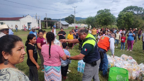 En El Naranjo dónde se ubica El Salto junto con el alcalde Rafael Olvera Torres entregaron víveres a Álamos de Arriba, El Abrevadero y La Manzana a 130 personas que quedaron aisladas por el corte de caminos debido a corrientes de agua.