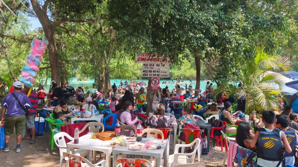 Lugares como las Cascadas de Micos, el Parque Ecoturístico El Meco, la Media Luna, los embarcaderos hacia la Cascada de Tamul y el Puente de Dios lucen a su máxima capacidad, con familias y visitantes que aprovechan la riqueza natural del Estado. En estos espacios se mantienen operativos coordinados entre autoridades, lo que permite brindar atención y resguardo a quienes recorren cada sitio.
