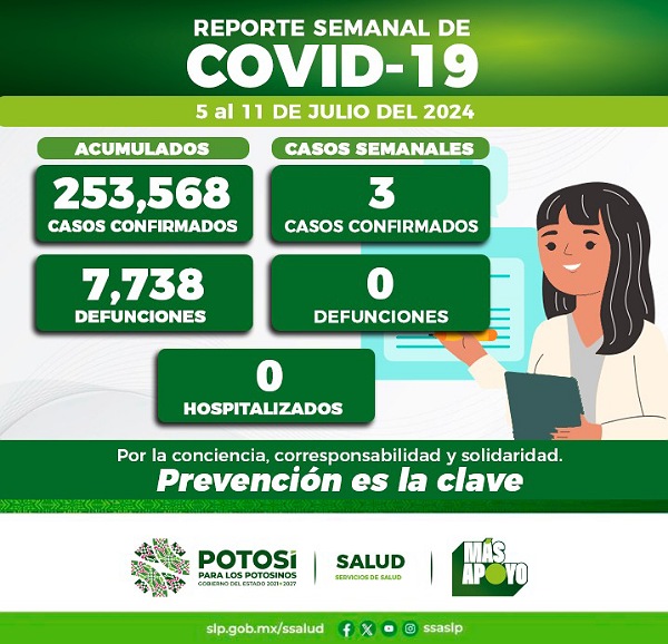 Del 5 al 11 de julio del presente año, se registraron tres nuevos contagios de COVID-19 confirmando el Comité Estatal para la Seguridad en Salud y los Servicios de Salud 253 mil 568 casos totales de esta enfermedad.