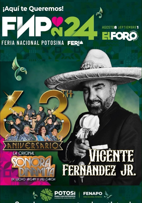 La Feria Nacional Potosina (Fenapo) edición 2024, sumará dos importantes representantes de la música a su gran cartelera de talentos, con la presentación de La Sonora Dinamita y Vicente Fernández Jr. en el teatro de pueblo, que, a través de sus más famosos éxitos, harán vibrar el escenario más grande de México, con las ventajas de la gratuidad en apoyo a las y los potosinos.