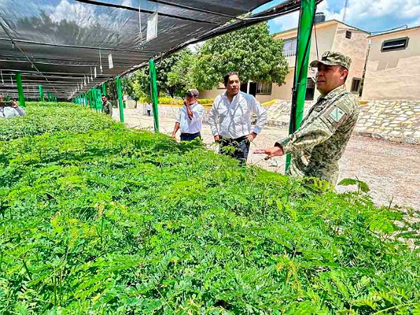 El titular de la Segam, Jovanny de Jesús Ramón Cruz y el Mayor de Artillería, Hugo Enrique Romero Soberanes, recorrieron el vivero donde realizan la producción, desarrollo y extracción de las plantas de especies como: Jacaranda, Tepehuaje, Flamboyán, Lluvia de Oro, Orejón, Ébano, Neem, Palo de Rosa y Caobilla, por su rápido crecimiento y su importancia para la restauración de los ecosistemas locales, tal como lo ha instruido el Gobernador Ricardo Gallardo Cardona.
