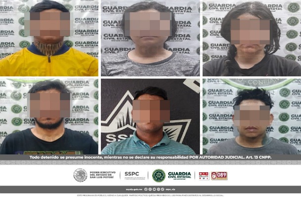 S.L.P.- En el marco de la atención a las llamadas de auxilio que son atendidas por la Línea de Emergencias 911, elementos de la Guardia Civil Estatal (GCE) detuvieron a seis personas, por el probable delito de violencia familiar.