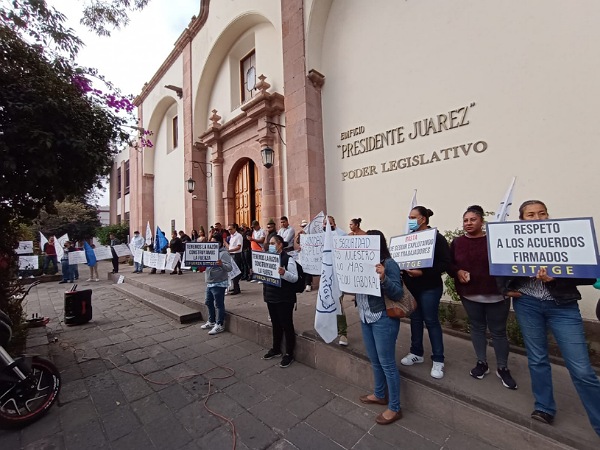 En el edificio legislativo, miembros del Sindicato Independiente de Trabajadores y Trabajadores de Gobierno del Estado (SITTGE) protestaron durante las comparecencias del Secretario de Seguridad y Protección Ciudadana, Guzmar Ángel González Castillo y del Secretario de Finanzas, Salvador González Martínez para exigirles solución a la problemática laboral que ambos han generado contra sus propias y propios empleados.