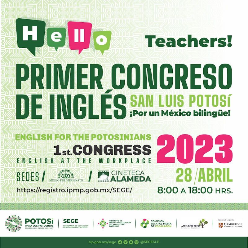 Derivado de convenios de colaboración con distintas instituciones que fortalecen la enseñanza y aprendizaje del idioma inglés a favor de las niñas, niños y jóvenes potosinos, el Gobierno del cambio que dirige Ricardo Gallardo Cardona, a través de la Secretaría de Educación del Gobierno del Estado (SEGE), concretó el Primer Congreso Nacional “English at the workplace” que se llevará a cabo este viernes 28 de abril.