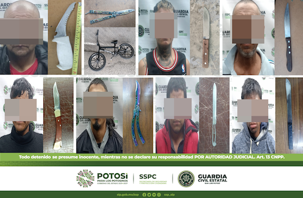 Mediante las acciones de vigilancia para garantizar la seguridad pública a las y los potosinos, en el marco del despliegue del Operativo “Semana Santa Segura 2023”, 8 personas fueron detenidas por la Guardia Civil Estatal (GCE) por el probable delito de portación de armas prohibidas.