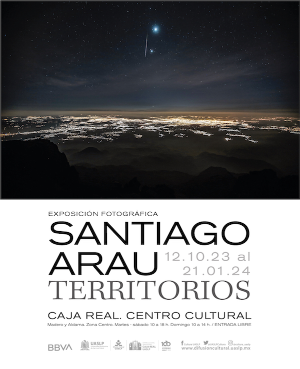La Universidad Autónoma de San Luis Potosí a través de la Secretaría de Difusión Cultural, en conjunto con BBVA México presentan “Territorios”, exposición fotográfica del artista mexicano Santiago Arau y que estará disponible en el Centro Cultural Universitario Caja Real, del 12 de octubre de 2023 al 21 de enero de 2024.
