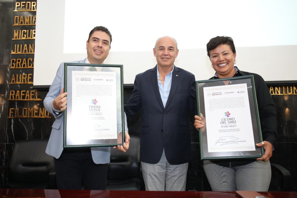 El Gobierno de San Luis Potosí entregó a Tierranueva y Ciudad del Maíz los nombramientos oficiales como Pueblos Mágicos, mismos que gracias al apoyo que brinda el Gobernador Ricardo Gallardo Cardona en materia turística, destacaron entre 123 municipios de 27 entidades del país que solicitaron la denominación.