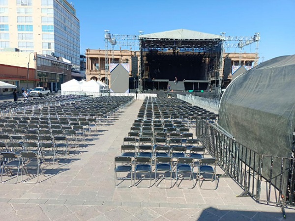 El escenario de Plaza de Aranzazú está casi listo; arranca actividad mañana domingo 24 de marzo.
