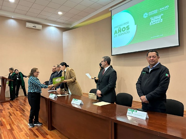 Con la entrega de reconocimientos y estímulos por 20, 25, 30, 35, 40, 45 y 50 años de antigüedad a las y los trabajadores de Sector Salud, en San Luis Potosí sí hay apoyo al personal de salud y a sus familias.