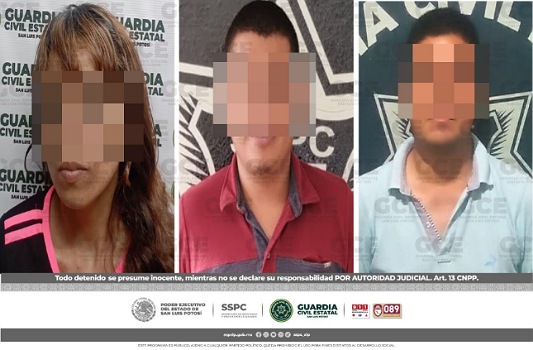 S.L.P.- Derivado de los operativos de seguridad en acción a los reportes ciudadanos sobre posibles casos de violencia familiar, dos hombres y una mujer fueron detenidos por agentes de Guardia Civil Estatal (GCE) por presuntas agresiones a sus familiares.