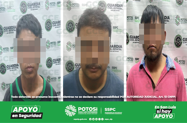 S.L.P.- Gracias a las denuncias que son recibidas en la Línea de Emergencias 911, policías de la Guardia Civil Estatal (GCE) detuvieron a tres individuos, por probables agresiones a sus cónyuges, a petición de las afectadas, dichas personas fueron remitidas a las autoridades.