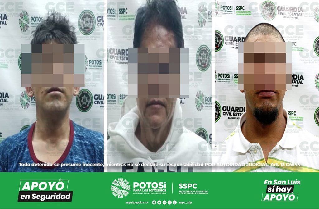 S.L.P.- Gracias a los trabajos preventivos y en atención a las llamadas de auxilio recibidas en la Línea de Emergencias 911, tres hombres resultaron detenidos por elementos de la Guardia Civil Estatal (GCE), luego de ser denunciados por el probable delito de violencia familiar.
