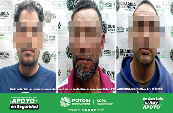 San Luis Potosí, S.L.P.- En diferentes acciones, oficiales de la Guardia Civil Estatal (GCE) detuvieron a tres individuos, quienes presumiblemente fueron denunciados por sus cónyuges e hija, luego de indicar haber sido víctimas de violencia familiar.