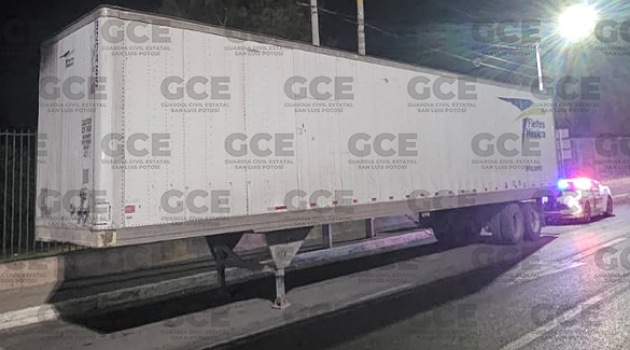 También se aseguró una unidad tipo caja seca, marca Hiunday, modelo 2007, color blanco, en el bulevar Antonio Rocha Cordero, la cual tenía reporte de robo del 04 de abril de 2024 de la comunidad El Jaralito; por último, en la comunidad de El Zapote, en el municipio de Soledad de Graciano Sánchez, se recuperó una unidad caja seca, marca Great Dane, color blanco, misma que fue hurtada el 03 de abril de 2024, del municipio de Mexquitic de Carmona.
