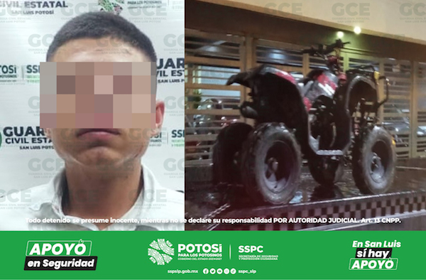 San Luis Potosí,S.L.P.- Elementos de la Guardia Civil Estatal lograron la detención de un hombre con un amplio historial en robo y allanamiento, el cual es acusado de robar una motocicleta en el fraccionamiento Tangamanga.
