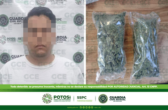 San Luis Potosí, S.L.P.- Tras los operativos de vigilancia y seguridad, que son efectuados por oficiales de Guardia Civil Estatal en la aduana de ingreso del Centro de Reinserción Social La Pila, un presunto fue detenido por pretender ingresar con 486 gramos de marihuana.