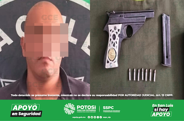 San Luis Potosí, S.L.P.- Agentes de la Guardia Civil Estatal lograron detener a un hombre en el municipio de Xilitla por llevar consigo un arma de fuego durante la aplicación del operativo “Huasteca Segura”.