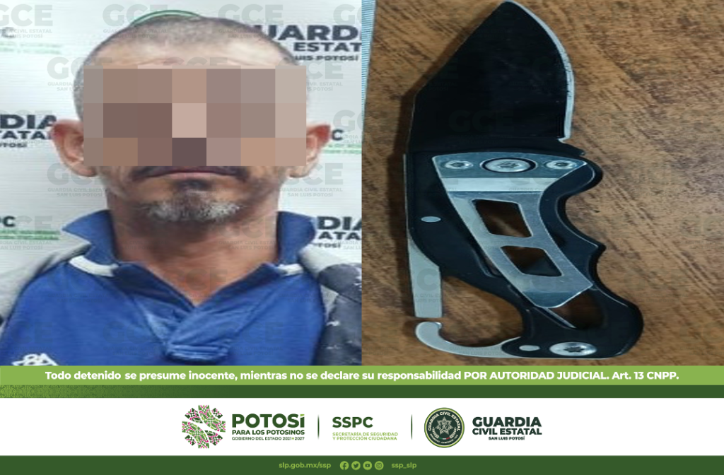 Derivado de una inspección a su persona, los uniformados aseguraron una navaja de 15 centímetros que portaba, derivado de ello se procedió a la detención de Carlos “N” de 38 años, quien fue puesto a disposición de la Fiscalía General del Estado junto con el arma blanca asegurada.