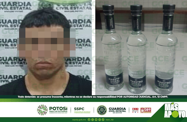 San Luis Potosí, S.L.P.- Elementos de la Guardia Civil Estatal aseguraron a un hombre acusado de apoderarse de mercancía diversa de una tienda comercial en la capital potosina.