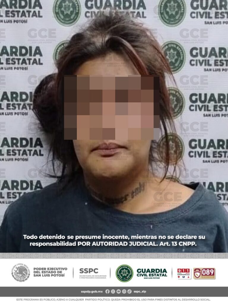 San Luis Potosí, S.L.P.- Como parte de la aplicación del Plan Integral de Seguridad en la capital potosina, elementos de la Guardia Civil Estatal detuvieron a una mujer acusada de causar daños a propiedad privada.