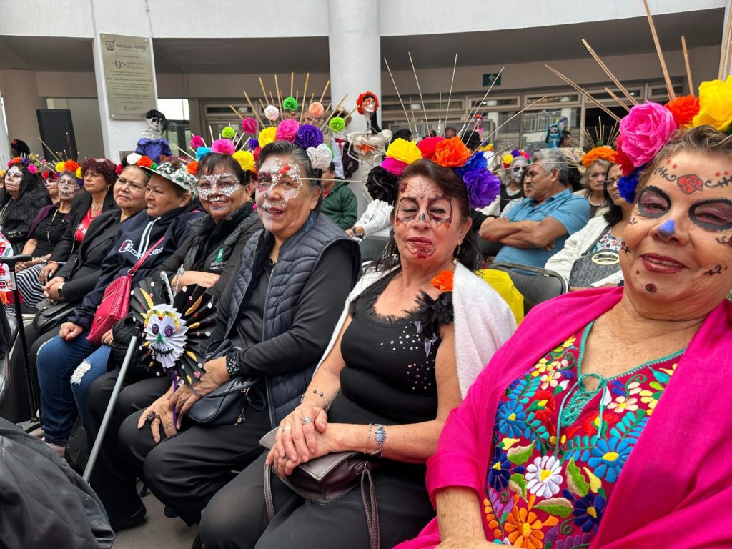 Hernández Fiscal indicó que las usuarias y usuarios participaron de manera activa, desde la confección de los trajes que portaron las 40 Catrinas y Catrines, que fueron elaborados por beneficiarias del taller de costura, el maquillaje cuya aplicación fue realizada por las alumnas de las clases de belleza, así como la bisutería y joyería que fueron elaboradas por las manos artesanas de los integrantes de los Clubes de Adulto Mayor, que usan como terapia ocupacional esta actividad, misma que en la mayoría de las ocasiones es un ingreso extra para ellas y ellos.