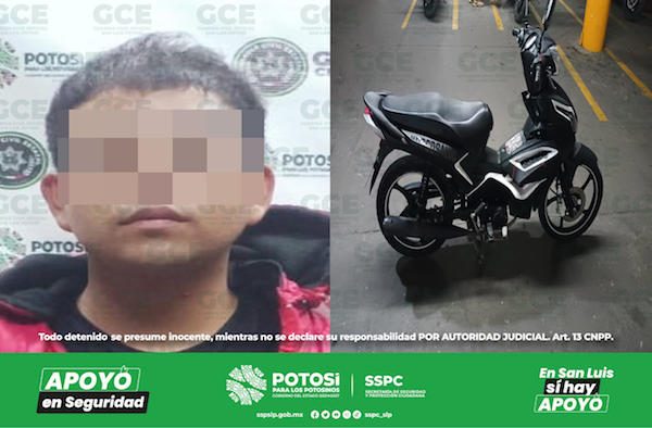 Tras no poder comprobar con documentación legal la propiedad de la motocicleta, agentes de la GCE solicitaron información de la unidad en la base de datos de Plataforma México. Dicho vehículo contaba con reporte de robo del mes de enero del año en curso, lo que derivó en la detención de Héctor “N” de 19 años de edad.